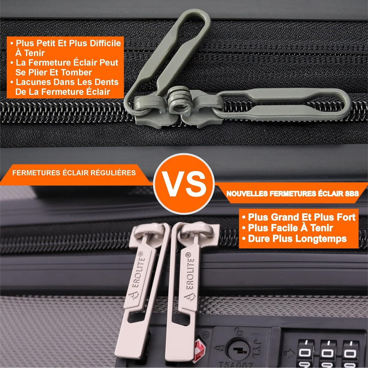 - FERMETURES ÉCLAIR EXTÉRIEURES ÉPAISSES ET SERRURE TSA INTÉGRÉE – La valise est équipée d'un système de double fermeture éclair avec des fermetures éclair SBS épaisses et de haute qualité pour une fermeture facile et fiable. La valise dispose d'une serrure à combinaison approuvée par la TSA pour une sécurité accrue de vos effets personnels.