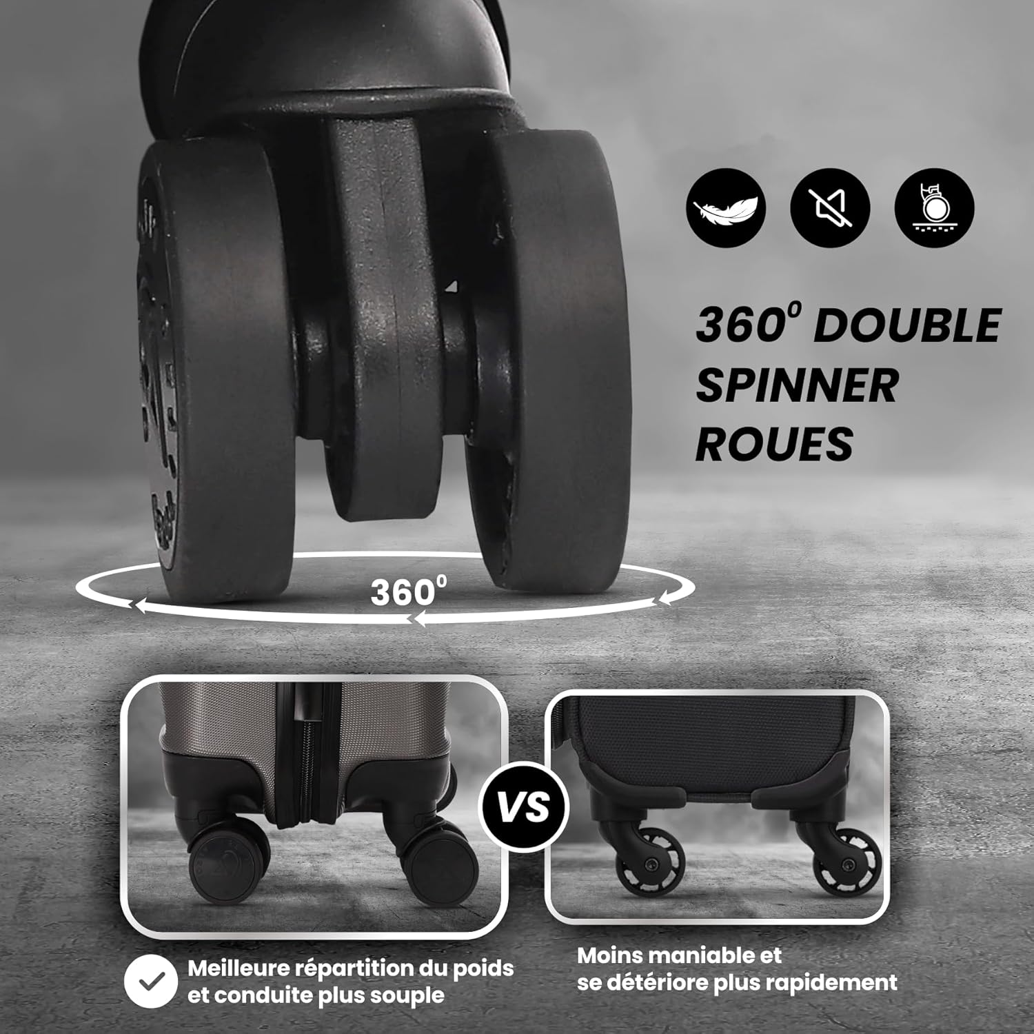 - RENDRE LES VOYAGES FACILES: Quatre roulettes rotatives permettent un mouvement fluide à 360 degrés, tandis que la poignée rétractable à deux tiges (qui se rétracte en appuyant sur un bouton) favorise un transport simple et facile, tout en facilitant également la stabilisation des objets posés au dessus.